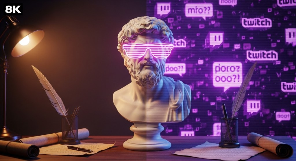 Más allá de las comparaciones específicas con Jostein Gaarder, Umberto Eco, Jorge Luis Borges o Byung-Chul Han, la serie Nexum se sitúa también en diálogo con una constelación más amplia de tradiciones y figuras que permiten afinar su posición dentro del panorama filosófico y literario contemporáneo. En primer lugar, resulta inevitable evocar a Platón y sus diálogos, no solo como antecedente formal, sino como modelo de pensamiento en movimiento. Al igual que en textos como el Fedón o la República, en Nexum la verdad no se presenta como un contenido cerrado, sino como el resultado provisional de una confrontación entre voces. Sin embargo, Batlle Fuster introduce un elemento decisivo: el anacronismo tecnológico. La conversación filosófica ya no tiene lugar en la ágora, sino en una videollamada, lo que transforma radicalmente su ritmo, su tono y sus interrupciones, incorporando incluso el ruido, la latencia o la fragmentación como parte del propio pensamiento.