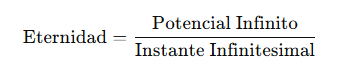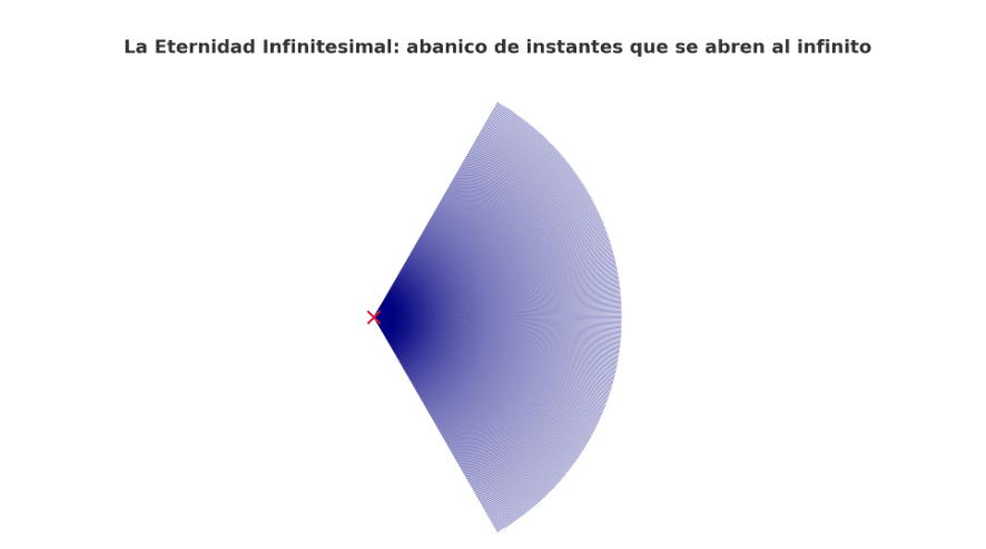 De manera análoga, la TEI propone que un instante diminuto —un “epsilon” de tiempo— puede contener la totalidad de la eternidad. Esta relación puede expresarse de manera poética mediante la fórmula: