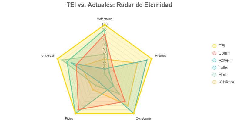 La TEI comienza a delinear un nuevo marco ontológico: el instante deja de ser un mero fragmento y se convierte en portal hacia lo eterno, en analogía con la manera en que la masa contiene energía en la física de Einstein.